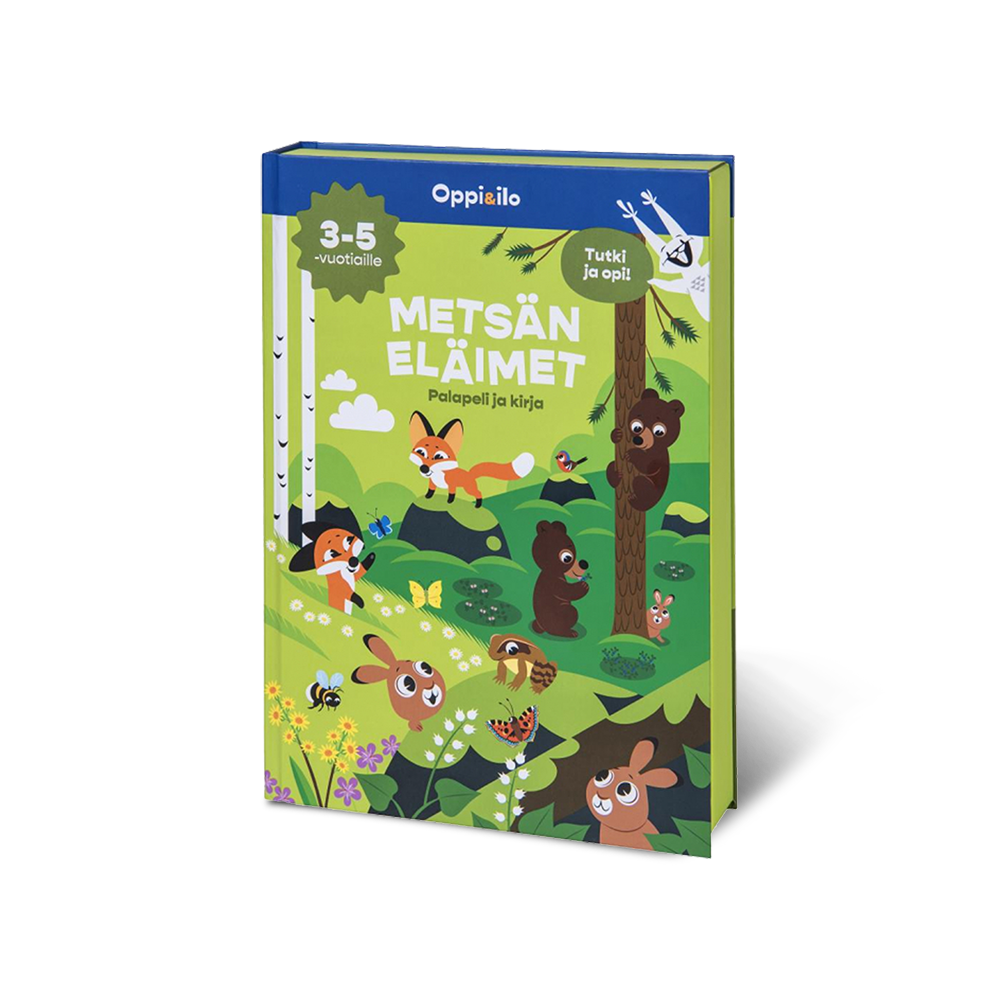 How many cute puppies does a fox have? What animal’s plush food stash is in a tree hole? And which of the animals has left the biggest traces on the snow project? Explore and learn about Finnish nature and forest animals! A charming 32-piece puzzle shows the animals in their summer home. The pages of the book also open up a view of the forest landscape of autumn, winter and spring – what exciting things happen in nature then? Assembling the puzzle, examining the pictures and answering the questions develop the child’s knowledge of nature, vocabulary and imagination.